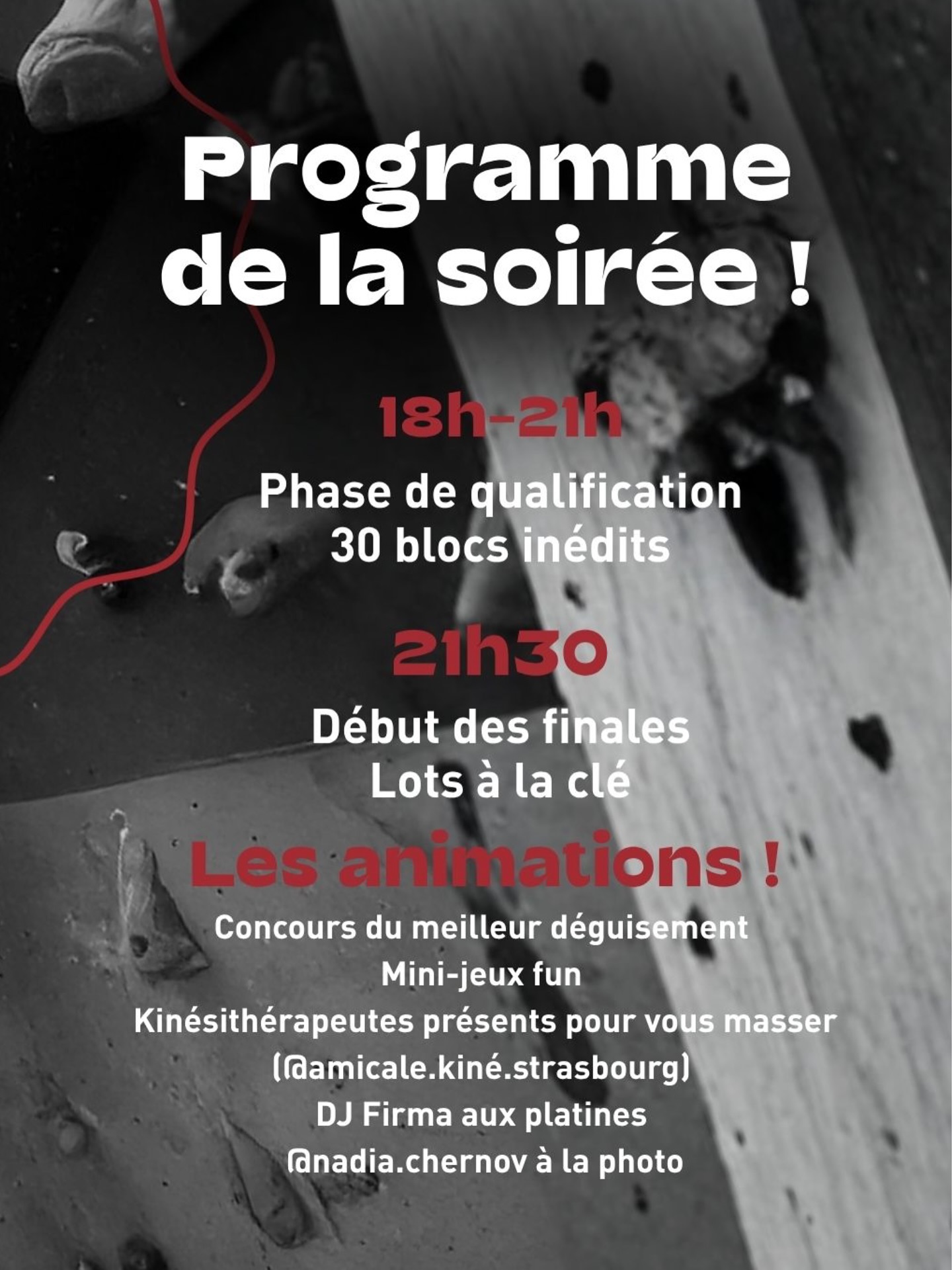 • 18h-21h : 3h de qualification sur 30 blocs inédits spécialement conçus par notre team d’ouvreurs !