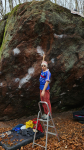Mathieu s’étant rééduqué tout l’été, il avait consciencieusement prévu sa remise en forme. Pas question de se retrouver fort dépourvu quand la bise (et le brouillard de l’hiver alsacien) fut venue. Au programme : des séances sur son panneau et un cycle de force à doigts afin de mettre toutes les chances de son côté ; Mathieu ne laisse jamais rien au hasard (c’est là son moindre défaut). En plus des week-ends grouillants de monde au tailleur de pierre, il aura aussi fallu poser quelques RTT en semaine pour être tranquille sous le bloc, l’occasion de trouver les derniers ajustements qui subsistaient encore.