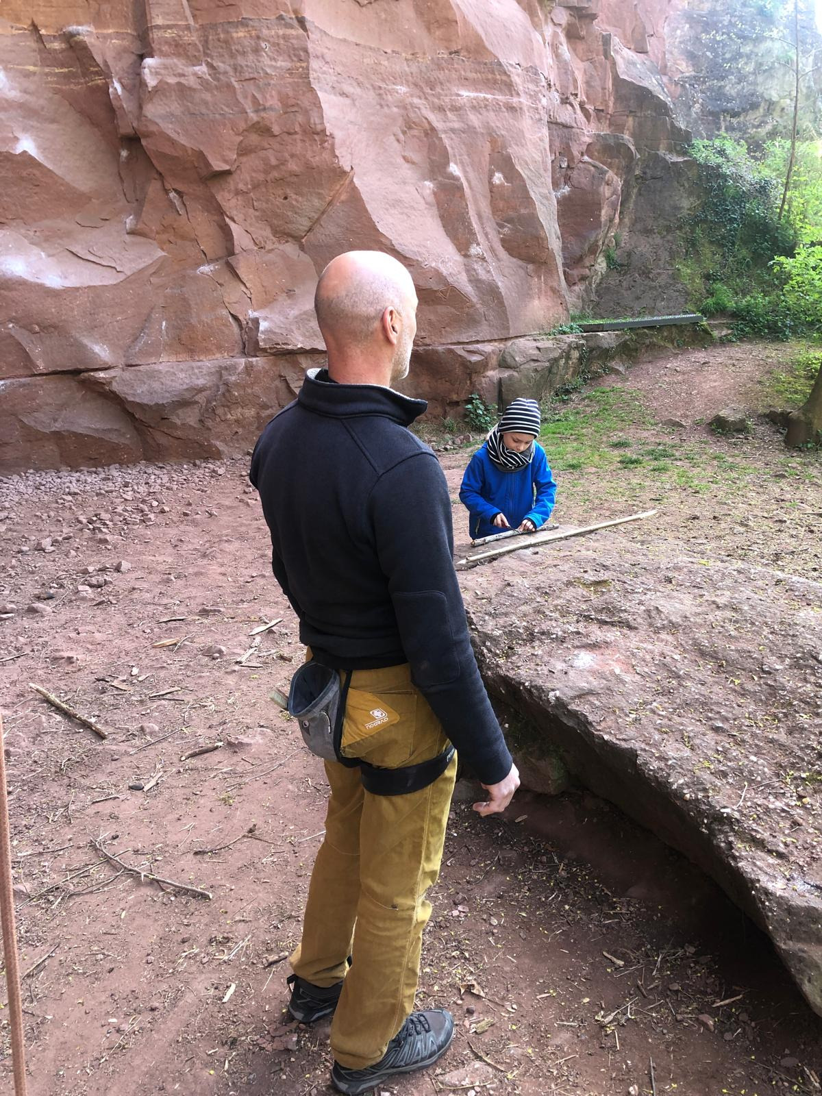 Samedi 11 avril. Message énigmatique d’un certain AK accompagné d’une photo : une personne de dos, au crâne luisant sous le soleil de la grande grotte du Kronthal. C’est tout ce que veut bien voir mon esprit, que mon café n’a pas encore désembrumé. AK insiste : “devines, car tu serais surpris. C’est un grimpeur d'exception“. N’oublions pas qu’AK s’est fourvoyé quelques années dans le sud ; il y a appris l’art de l’aguichage et de l’outrance, de la complainte (“morphoooooo !“), autant que celui du maniement de la perche et de la pose immorale des genoux…
