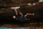 Appelé "La Bande d’Arrêt d’Urgence", alors qu'il était essayé par Jean-Minh, ce bloc de Zinswiller se résume en un seul mot : jeté. Le départ se fait sur une énorme rampe plate, le pied se pose dans le toit, en planche, et c'est parti pour le jeté sur un énorme bac. Lors de l'ouverture Fred s'est arrêté au sommet du rocher, ce qui rajoute quelques mouvements au problème. En ce qui concerne la cotation Fred hésite à proposer 7c, car Pierre Bollinger qui avait essayé le bloc avait parlé d'un possible 7b ou 7b+." -