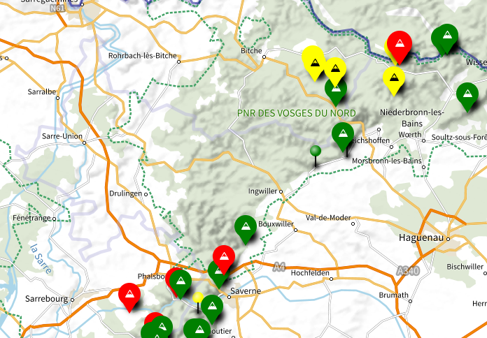 Pour info, il manque plein de sites sur la carte interactive : Froensbourg, Landersberg, Rocher Philippe, Heidenkopf, Point de vue, Kobus, Petit Moulin, Baldur, Althal etc. et certains sites sont mal positionnés (ex. Waldeck).