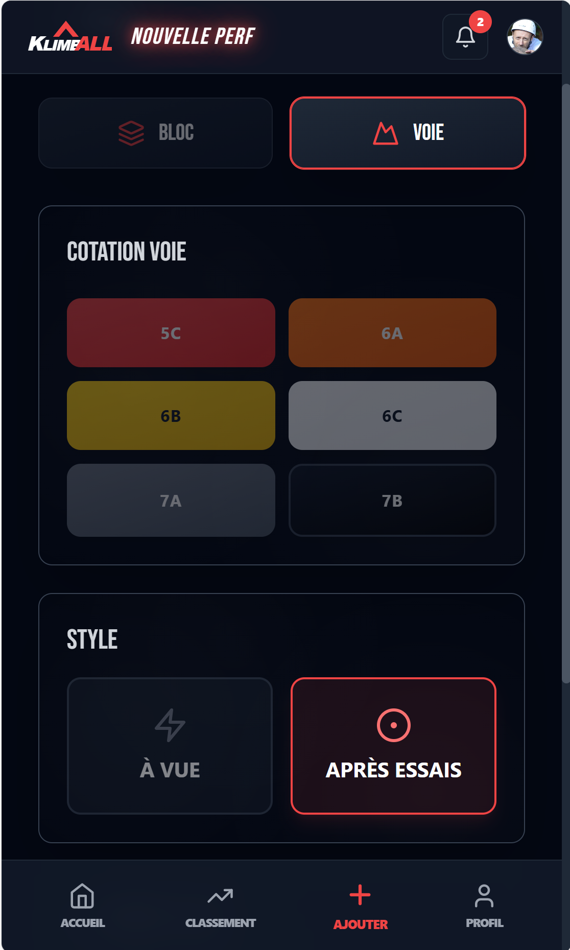 C’est totalement gratuit, sans pub, et c’est un projet de passionné. L'idée est d'avoir un historique propre et de se fixer des objectifs mensuels. On peut l'utiliser pour le bloc ou la voie, en salle ou en falaise.