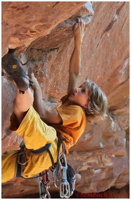 Colin Claudon à l’essai dans "La Taille et la gamelle" 8a (Kronthal)