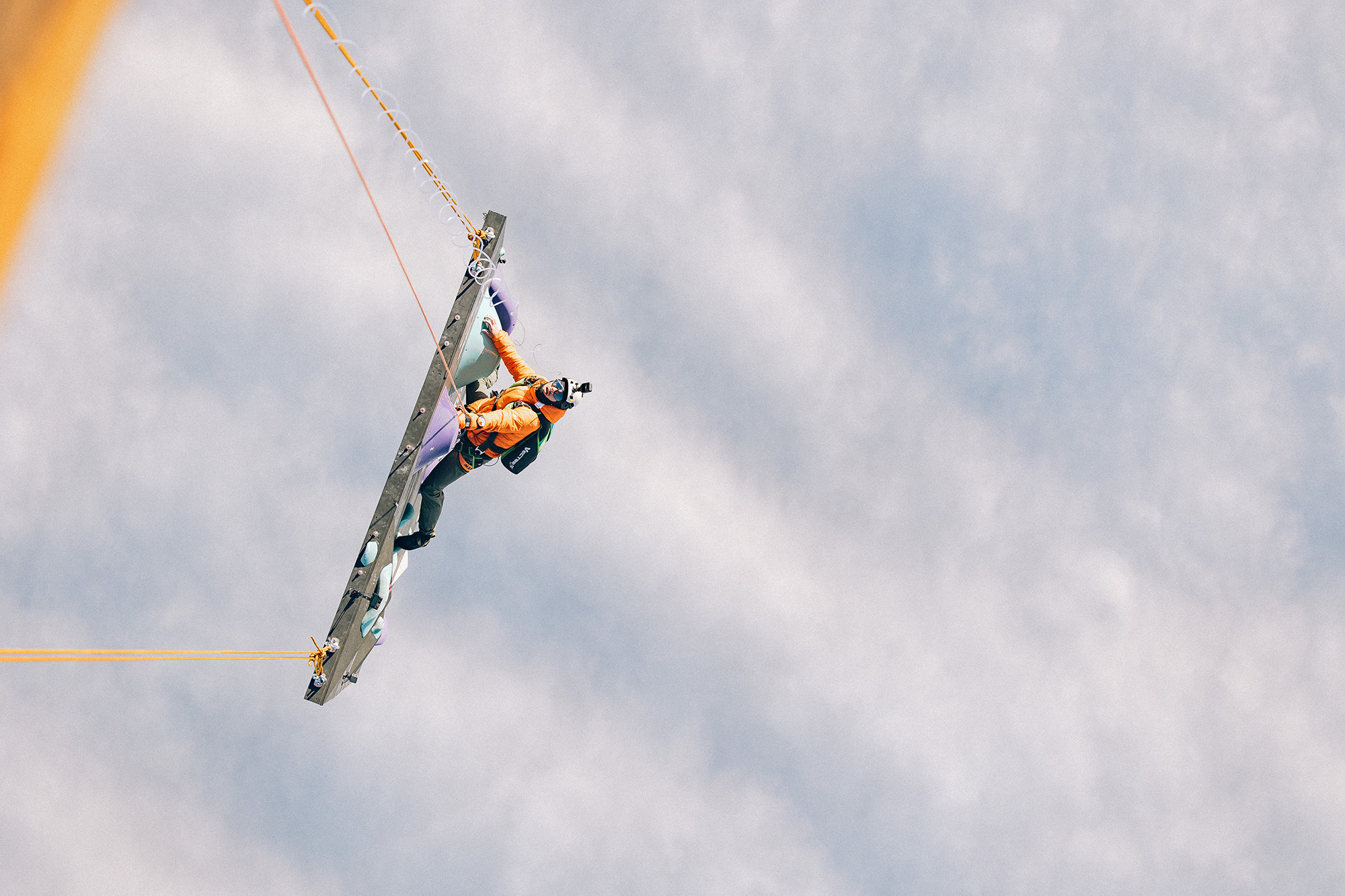 Julien Roux fait un bloc à plus de 4200m, suspendu à une montgolfière.