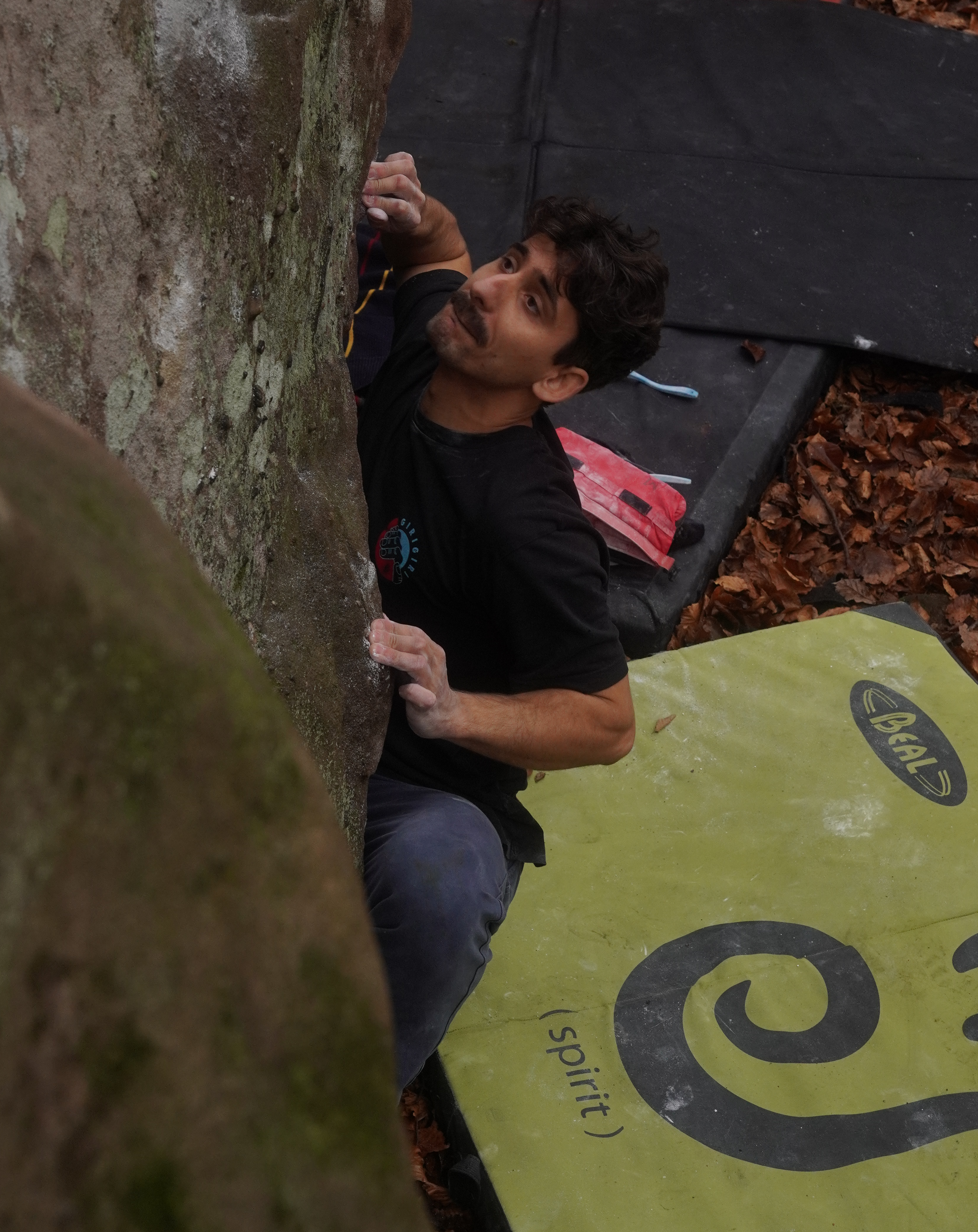 Louis dans le départ de C'est pas toi c'est moi, 6B+/C du Laurenzoboulderfels